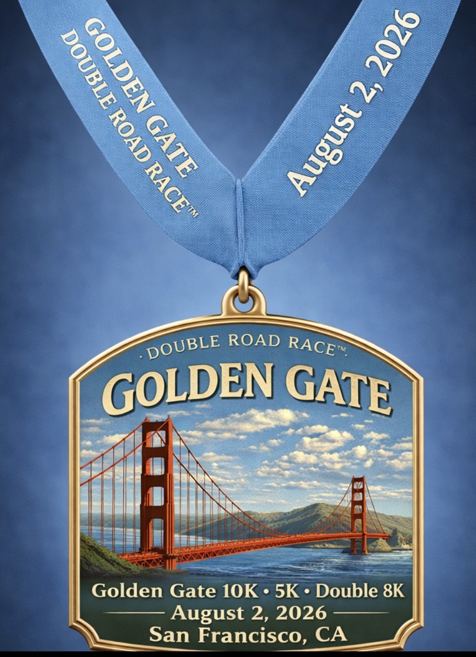 Enjoy the great views of the Golden Gate! New large medals for all finishers, special logo patch shirt and logo tote bag for all participants. (Get signed up before we sell out as we have in the past.) Prize money for men and women's winners of the Double 8k. $100 each and trophies for winners in each Double 8k race.