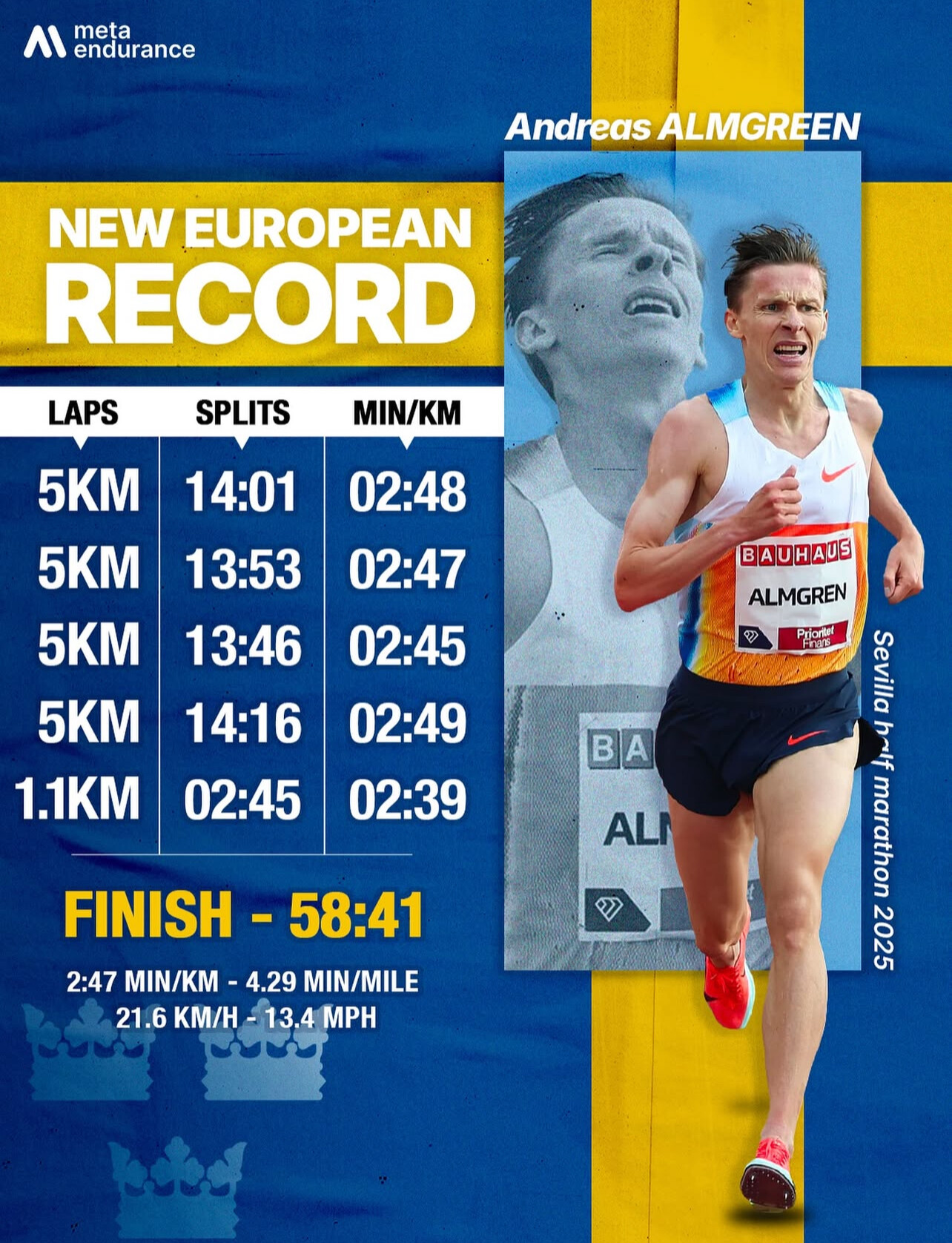 European Record: Andreas Almgren (Sweden) – 58:41