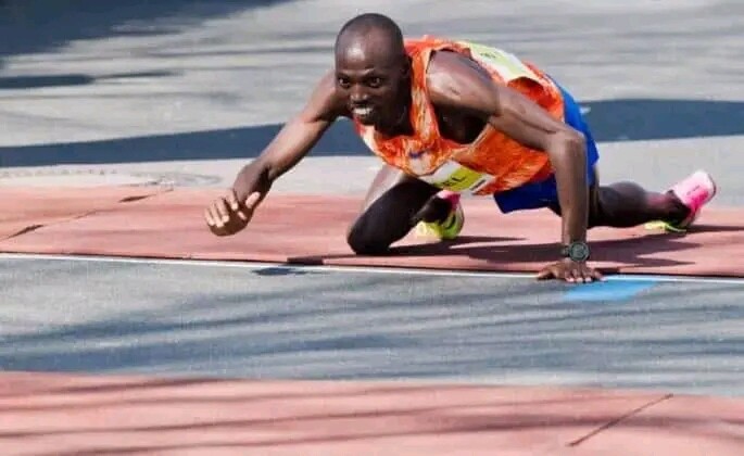 On the streets of Hannover, what began as a display of strength and tactical discipline soon turned into a gripping test of endurance under extreme distress. Kunyaga had run a brilliant race, positioning himself firmly in second place behind Ethiopia’s Seboka Negussa. With the finish line just meters away, the Kenyan appeared certain to seal a well-earned podium finish.