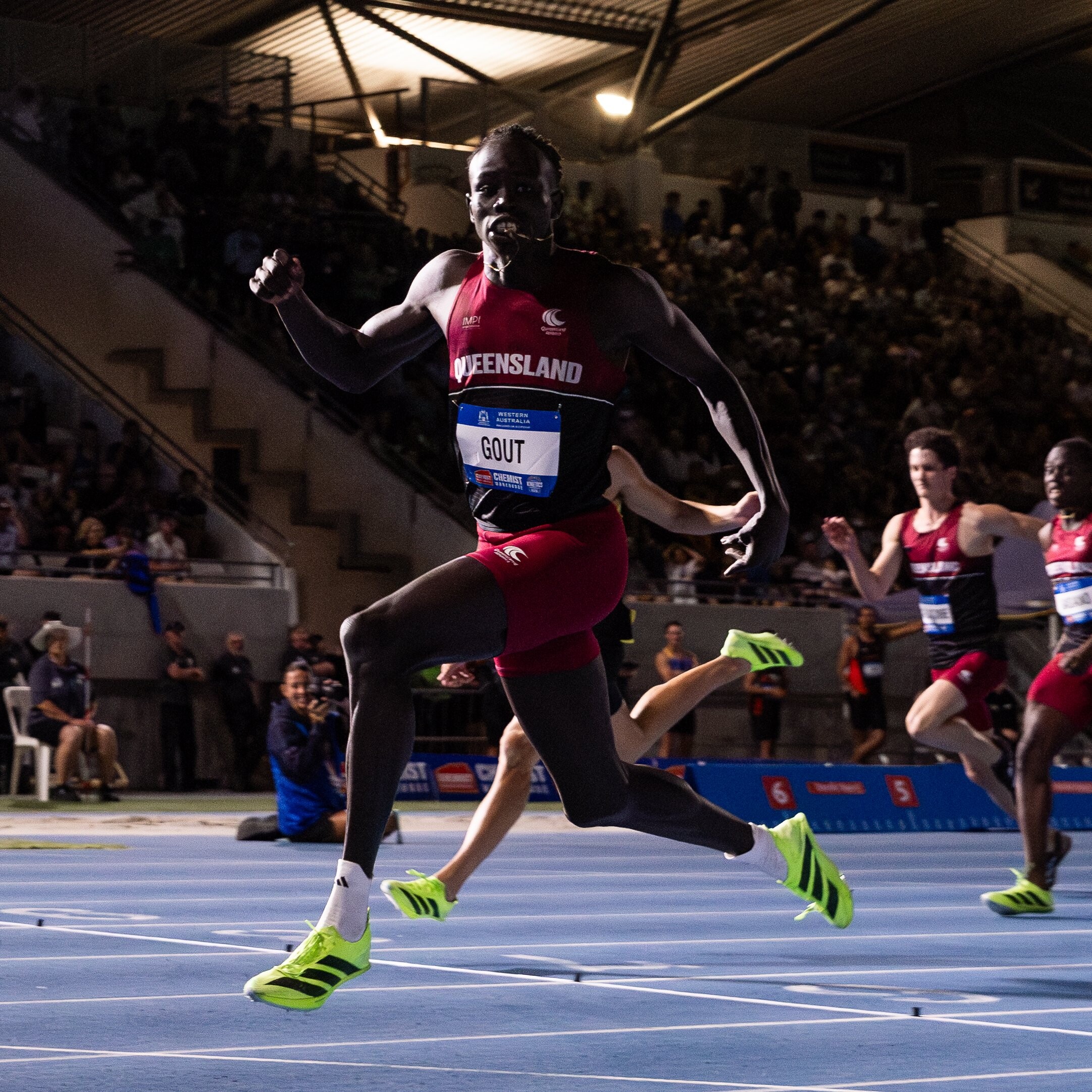 From the moment the gun fired, Gout attacked the bend with confidence before exploding down the home straight. His stride remained fluid, powerful and controlled as he surged clear of the field, crossing the line to immediate celebration and disbelief. When the time flashed on the board, history had been made.