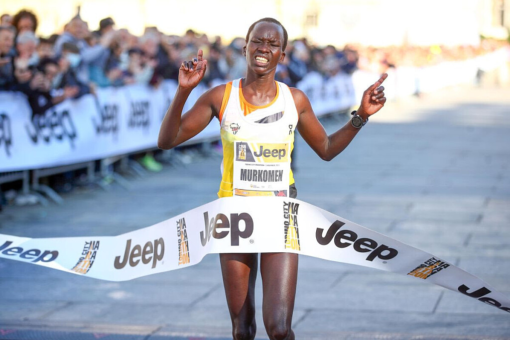 She crossed the finish line in 2:24:52, winning by over 400 meters.