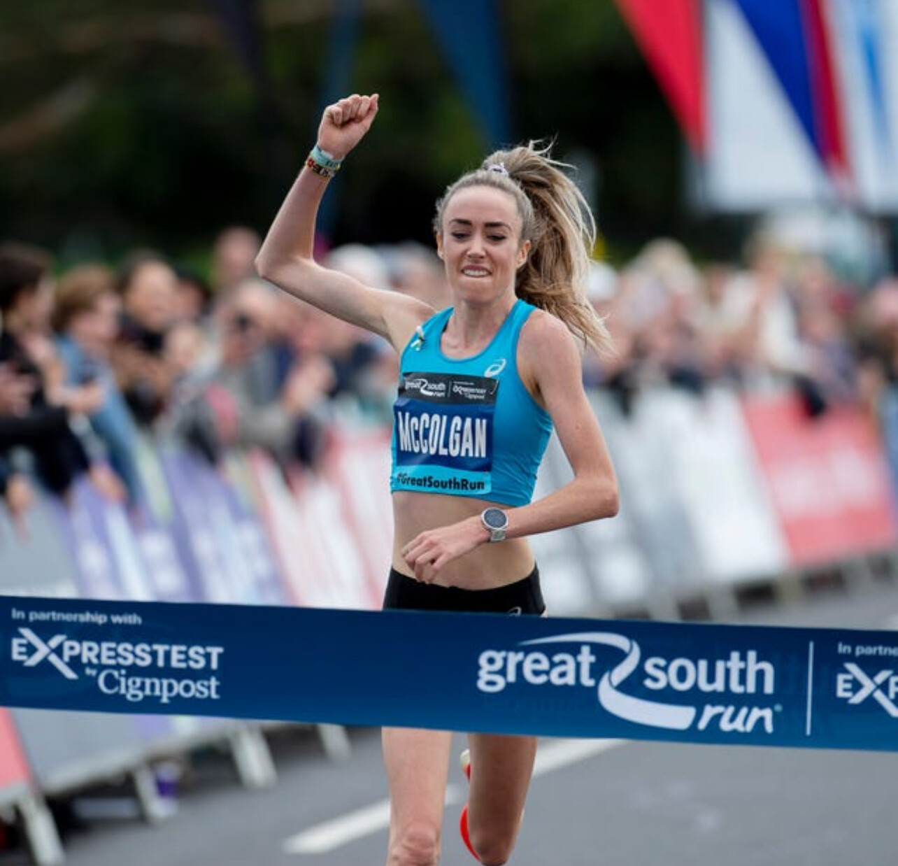 While the men’s race delivered high drama, the women’s event belonged to Alex Bell, who produced a brilliant performance to capture victory and set a new personal best. Bell ran with confidence and strength throughout the race, ultimately breaking the tape in 1:09:15, a performance that crowned her the standout star of the women’s field.