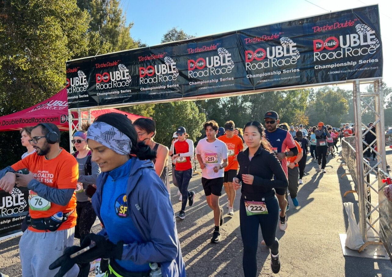 The 13th Annual Christmas Double 15K and the accompanying Palo Alto 10k, 5K, and Bob Anderson Mile were held in Palo Alto, California, under excellent racing conditions. Temperatures hovered around 50 degrees, with no wind, on flat out-and-back courses along a mostly paved bike path.