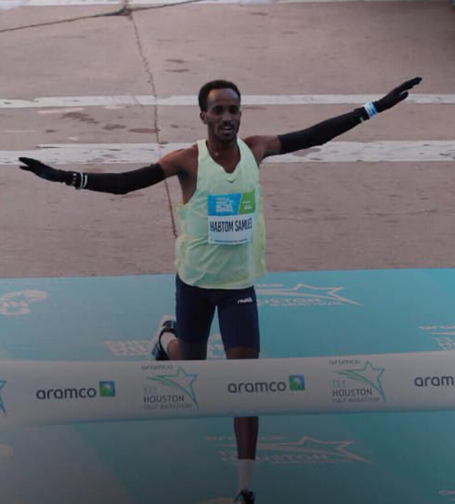 The headline name on the men’s start list was Ghirmay Gebreslassie, Eritrea’s 2015 world champion. However, the 30-year-old was forced to drop out at 18 kilometers after developing a hamstring problem. That opened the door for a surprise turn of events, as his 18-year-old brother Abraham Embaye boldly took control of the race, passing halfway in 63:52.