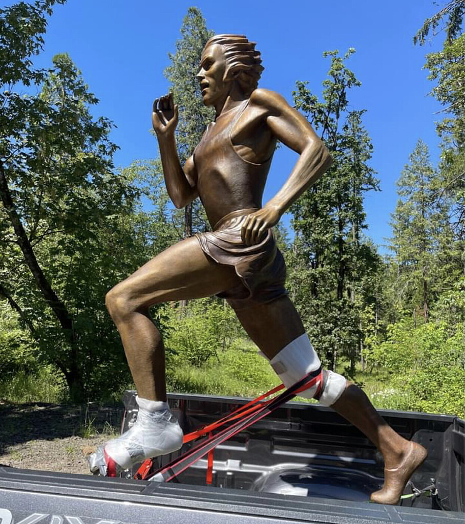 This Bronze statue of Pre has just been delivered to the Fifth Street Public Market in Eugene. It should be on display throughout the July 15-24 World Championships, and I hope the world will learn our USA Running and Oregon story. And selfishly, the Nike story.