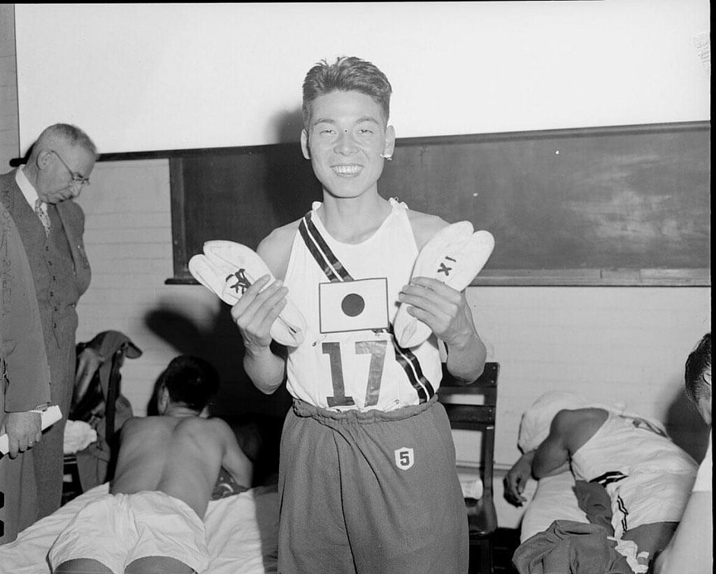 Tanaka won the marathon racing in tabi-inspired split-toe running shoes made by Onitsuka, which he thought would give him better traction.