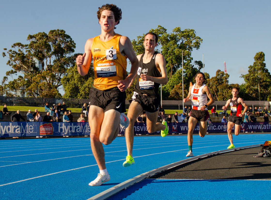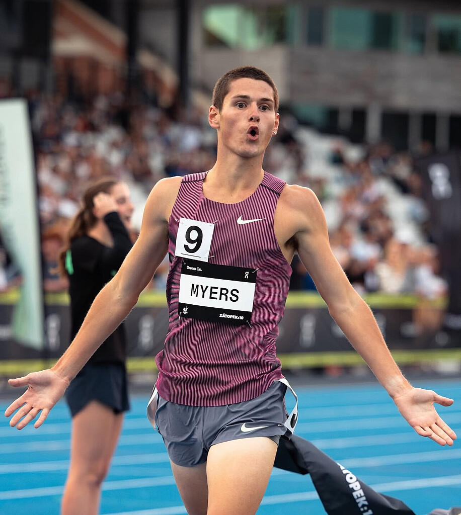 In February 2023, at just 16 years and 259 days old, Myers became the second-youngest person ever to run a sub-four-minute mile, clocking 3:55.44 at the Maurie Plant Meet in Melbourne. This performance surpassed Jakob Ingebrigtsen’s age-group record by over two seconds. Later that year, he set a world U18 best in the 1500m with a time of 3:33.26 at the Diamond League event in Chorzów, Poland.