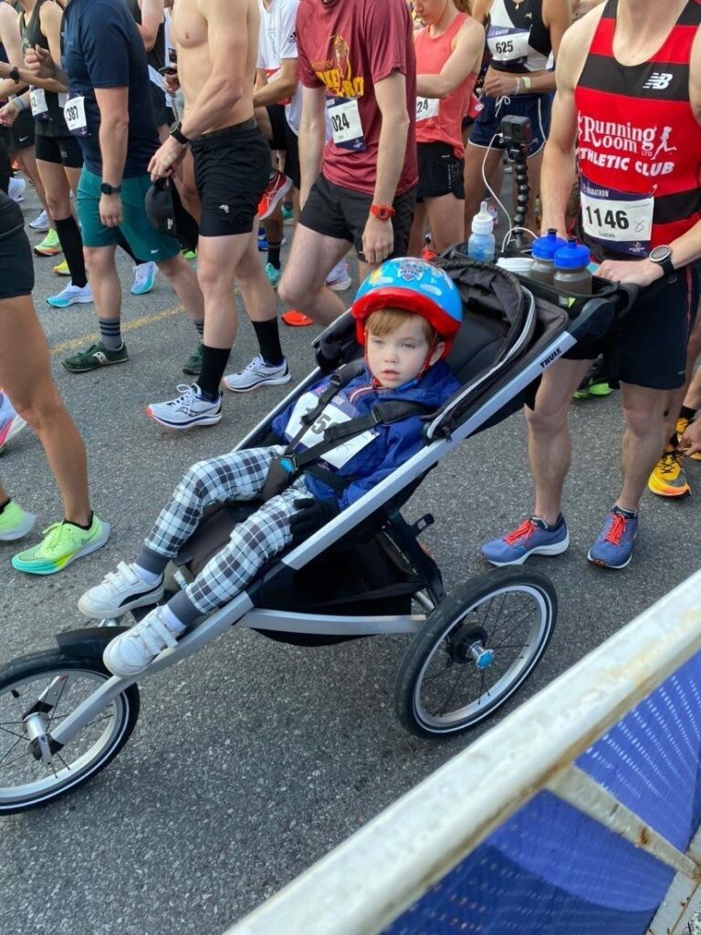 Canadian marathoner and dad from Waterdown, Ont., Lucas McAneney not only won Sunday’s Buffalo Marathon in Buffalo, N.Y. but did it with his two-year-old son Sutton along for the ride. McAneney pushed a stroller for the entire race in an attempt to break Calum Neff’s Guinness world record for the fastest marathon while pushing a stroller.