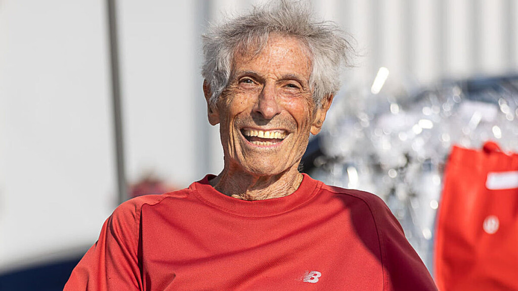 After his third marathon, Polosa took a break from running after losing the cartilage in his knees. Now at 93, Polosa is back running, wearing his knee brace and setting Canadian records after an Amazon advertisement recommendation from his wife Lynne Weaver. “They have become his best friends,” she says.