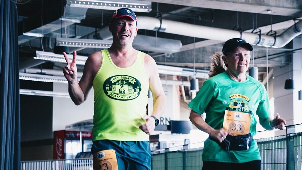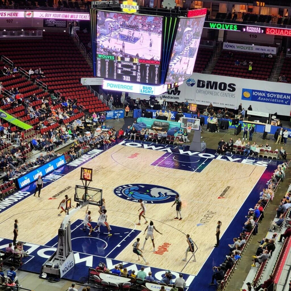 The event was hosted by the IMT Des Moines Marathon and the Iowa Wolves, a farm team for the NBA’s Minnesota Timberwolves. The runners began the marathon at 5 p.m., two and a half hours before tip-off, and were given a five-hour window to complete the race (by the time the game ended, around 9:30-10 p.m.). Four runners finished the full 42.195 kilometers.