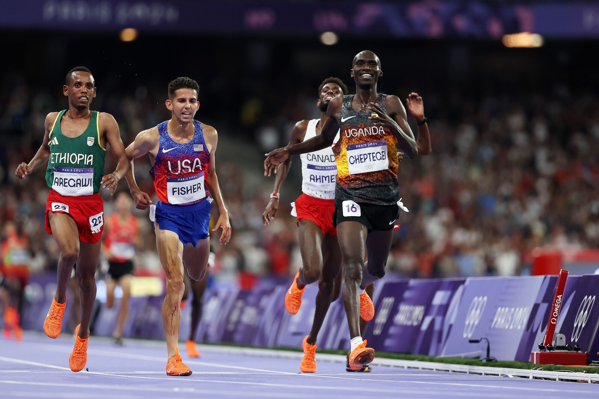 The current Olympic record for the 10,000 meters was set by Uganda’s Joshua Cheptegei at the 2024 Paris Olympics with a time of 26:43.14. That’s 1 minute and 41 seconds faster than Mills' winning time.