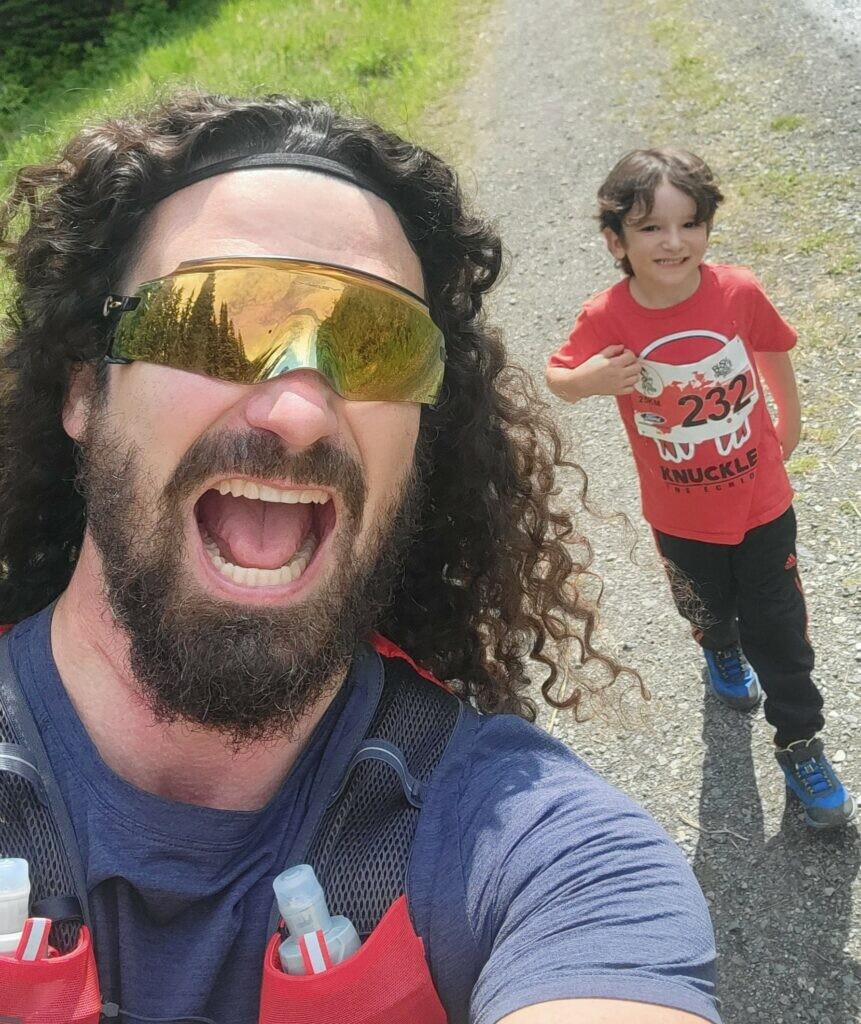 While Jake was looking for things to do with his son at Silverstar, resort, he stumbled upon the Slay The Dragon 25K on ultrasignup.com. “I saw the race had a generous cut-off time, and the course didn’t seem too crazy,” says Jake. He told us that he has been wanting to get more into trail running, and has done many 5K races with his young son in the past. “25K seemed like a gentle distance for Emmett and me, and running has been a sport he has always liked,” says Jake.