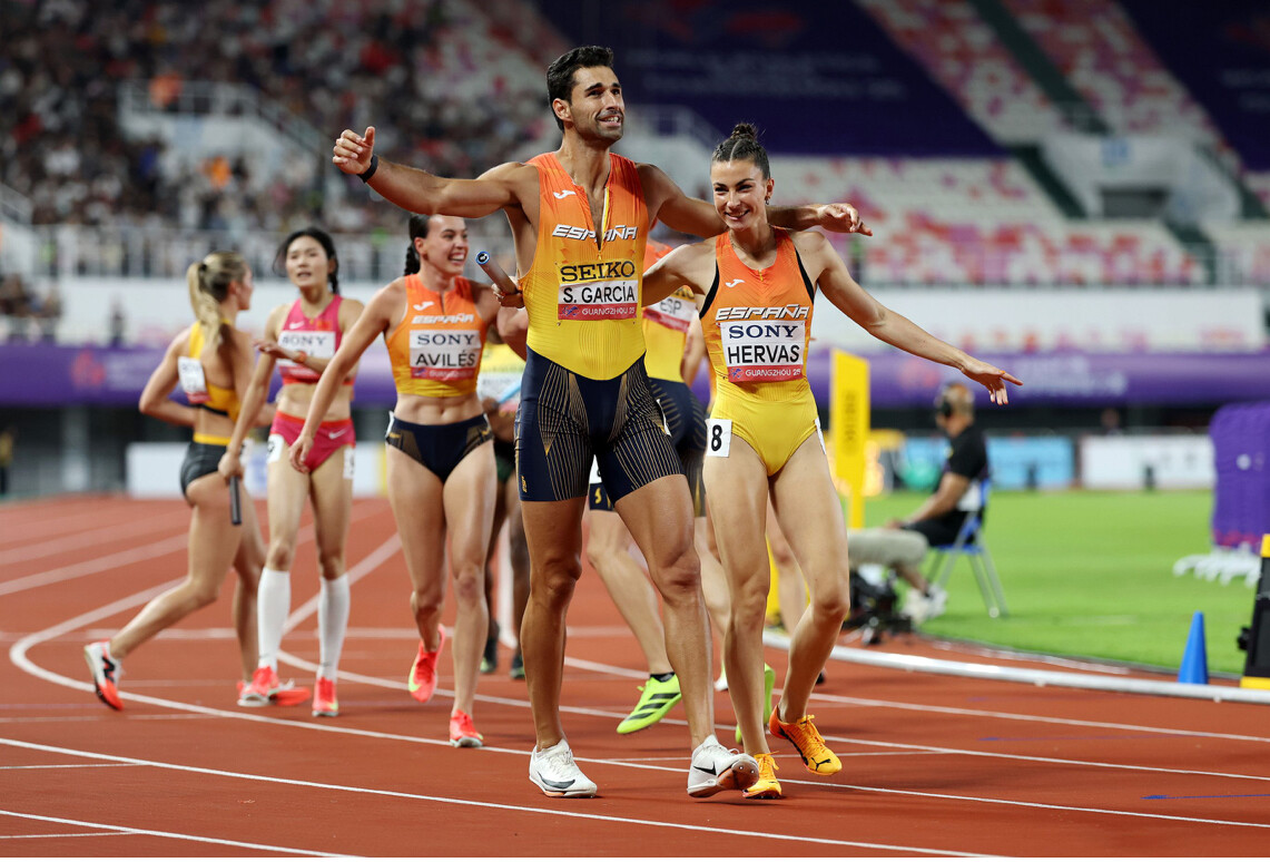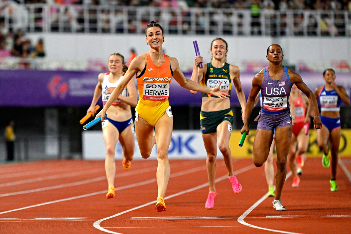 “My biggest dream came true,” said Hervas. “Gold medal, national record, World Relays champion—this is for our coaches, our families, everyone. It’s their medal too.”