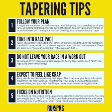 As for the mental side of things, the taper allows you the time to get your mental game in check. Romano recommends creating mantras you can repeat to yourself during the race, or writing a motivational phrase on your arm for visual encouragement. Creating a race plan will also help prepare you mentally, and can help quell some of those race-day nerves. (But remember to be flexible, adjusting your plan on the fly if you encounter difficult weather conditions, or you find yourself nurturing a minor injury on race day.)