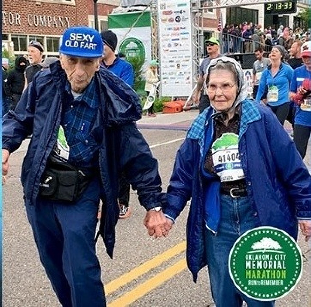Bob and Betty Kinder stuck out from the crowd of 26,000 runners who took part in the 2017 Oklahoma City Memorial Marathon. While they didn't win the race, they won the hearts of people around the country. Bob and Betty Kinder have been married for almost 61 years. Bob is 89-years-old, and Betty will be 85-years-old later this month. In 2017, the couple crossed the finish line and quickly became an Internet sensation. "She had had open heart surgery before the race and I was really worried about her," Bob Kinder said. They were photographed crossing the finish line holding hands, with Bob wearing a 'Sexy Old Fart' hat. "I had a hat that said 'Grouchy Old Fart' and I was deplaning in Denver. The stewardess said, 'Oh, you`re not grouchy, you're more sexy than grouch. And I well had to have a hat, had to have a sexy. I'm not going to argue with a stewardess, especially a nice looking one like she was," he said. "Some days he's real grouchy and I tell him to use the other hat," Betty laughed. They say they have been practicing by walking at least three times a week, and hope to make a better time this year. "We weren't last, there were people behind us," Betty said. "I want to keep walking. Make darn sure I'm still able to get up and get around," Bob said. "I wouldn't want somebody to holler, 'Breakfast is ready!' and not be able to get there." "You're only old once you start feeling old," Bob added.