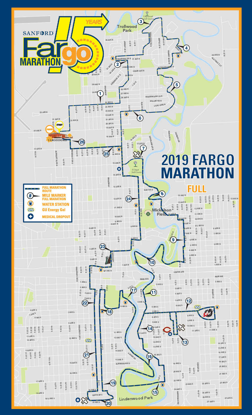 The Fargo Marathon is a week full of events, The Fargo Marathon is bound to have something for everyone. From the Cyclothon, Furgo Dog Run, Largest Kid's Race, 5K Walk/Run, 10K, Half Marathon, Full Marathon and Relays, there is a distance for all! Start and Finish inside the Fargo Dome - ...