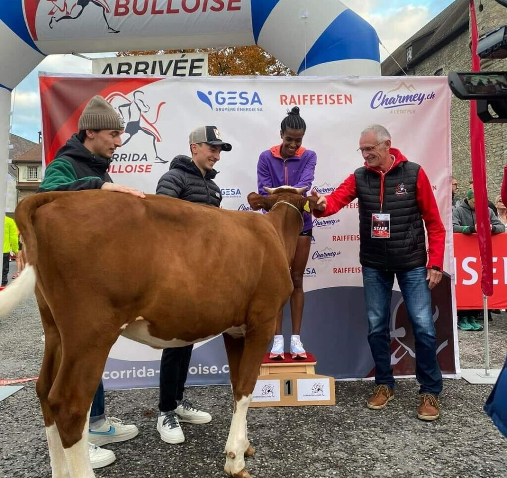 According to the race website, the winner of the men’s elite race receives a bull, which stands as an emblem for the city of Bulle. The first female finisher gets a cow.
