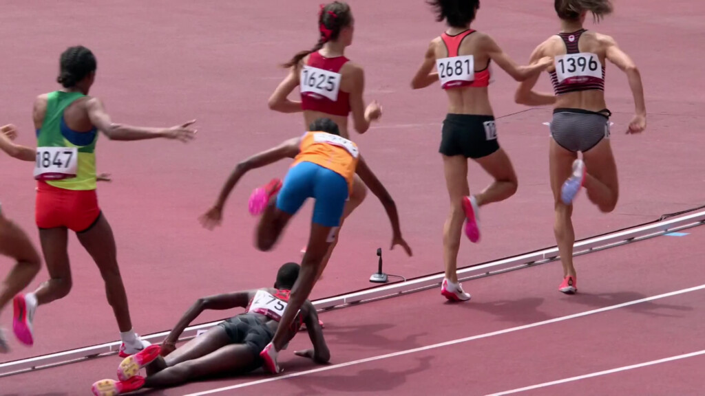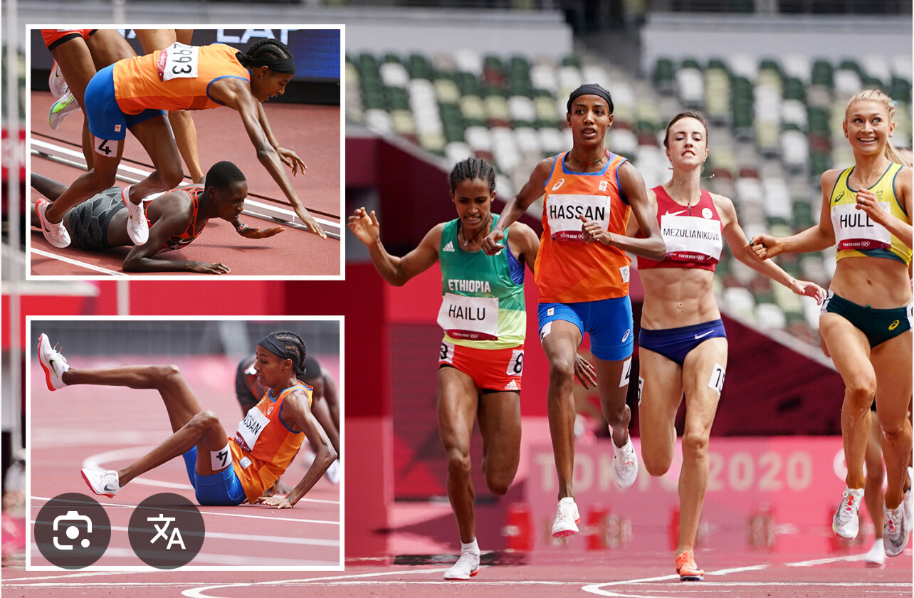 In the first round of the women’s 1500 meters, Dutch distance star Sifan Hassan was cruising near the back of the pack when disaster struck. With just one lap to go, a runner ahead of her tripped and fell—causing Hassan to tumble hard onto the track.