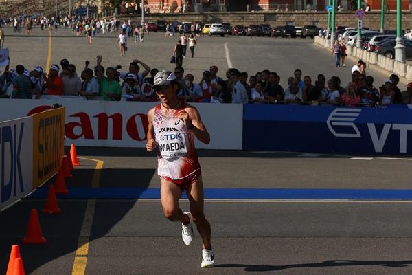 In the 12th 62th tournament, Yuuki Kawanai (Saitama Prefectural Government Office) and Kentaro Nakamoto (Yaskawa Electric) deploy intense dead heat from 28 kilograms past 40 kilometers.Kawachi won the tournament record for the first time in 17 years, 2 hours 8 minutes 15 seconds, Nakamoto also entered second place at his best 2 hours 8 minutes 35 seconds, both of whom won the title of the world championship.