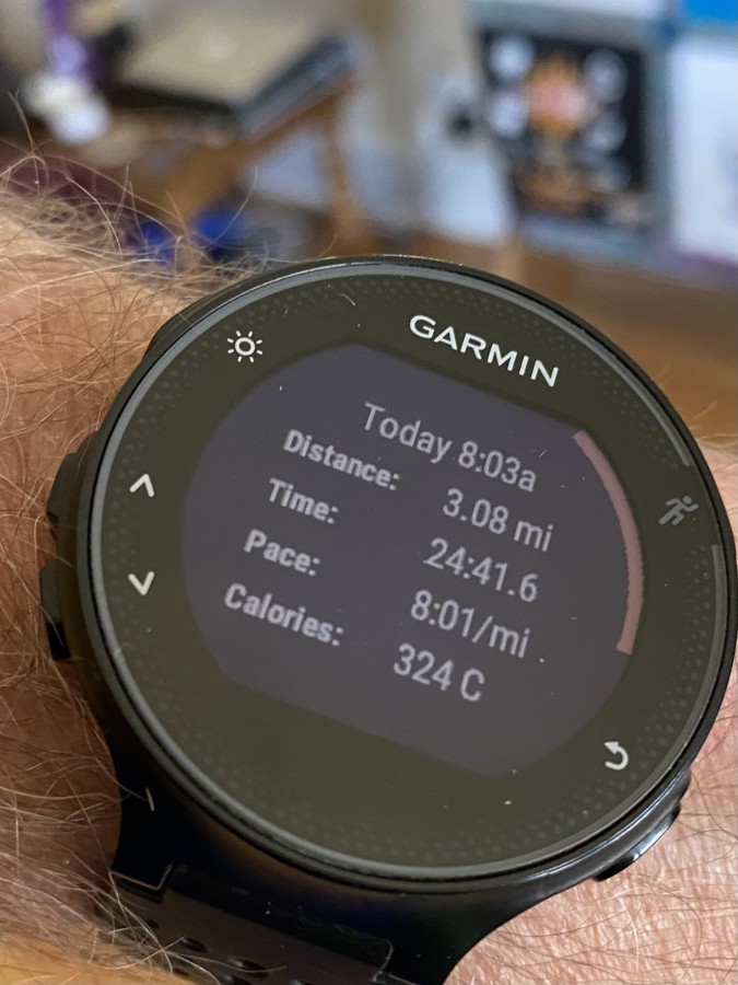 Speed day; we did a 5 min, 5 min off fartlek in the mid morning- humid was high.8.00 miles in Bend (runner profile)