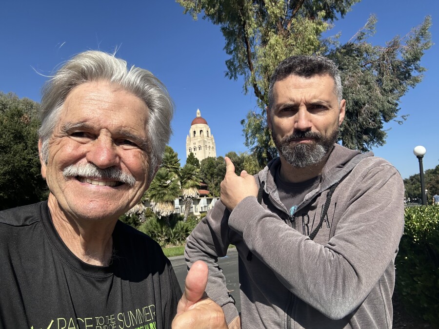 JR and I walked from Los Altod to Stanford. Nice day and good conversation. (Sun 19) / Total Miles 17,386.99 since 7/4/18