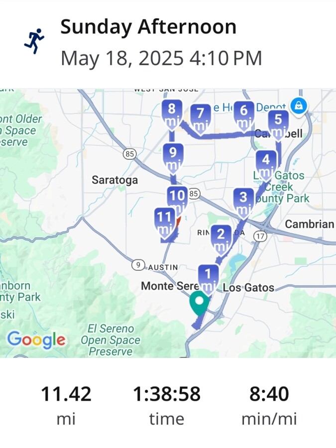 22.40 miles in Saratoga, Los Gatos, Cupertino, CA (runner profile)