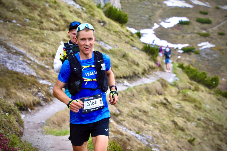 Back down in the valley, the two chased Baptiste Chassagne of France as the top three, as the race left the Stubai Valley and headed back up into the mountains toward Innsbruck. Benjamin Roubiol of France, Peter Fraňo of Slovakia, Aritz Egea of Spain, and Thibaut Garrivier of France all ran comfortably in the top 10, though Garrivier looked noticeably distressed compared to the others. Pre-race favorite, Nicolas Martin (pre-race interview) of France, was not in contention and would eventually drop after the halfway point due to knee pain.By the 36k mark, Reiterer had taken over the lead from Chassagne as they went over the biggest climb of the day, tallied at 1,400 meters (4,600 feet). From an outside observer’s perspective, Reiterer looked incredibly comfortable, running well within himself and appearing to have everything under control. Egea, Miller, Roubiol, Garrivier, and Fraňo all stayed in the top 10, all within 10 minutes of each other, biding their time.