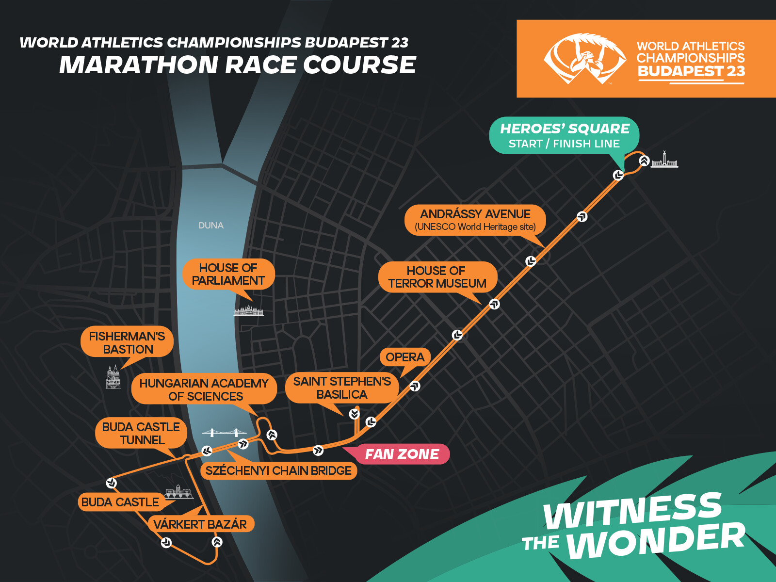 The race begins and ends at Heroes' Square - the start and finish of the official marathon events - with participants having the opportunity to run along Andrássy Avenue and other landmarks such as the Opera House and Budapest's UNESCO World Heritage sites.