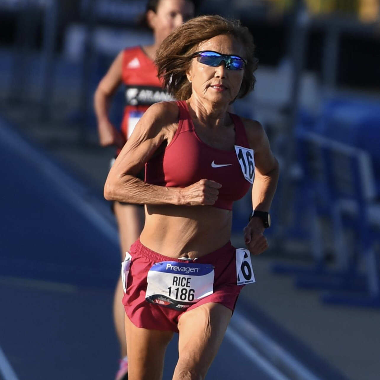 She did it again. On Thursday (July 20), the amazing Jeannie Rice, 75, broke the W75 World Record in the 5000 Meter Run. Jeannie Rice won Gold in Greensboro in the W75 5000 meters with a time of 22:41.46. By our calculations that betters the World Record of 22:53.55 set by British icon Angela Copson in Tampere last year. So, Greensboro Nationals may have already yielded a new World Record and the first morning of the competition isn't even over yet.