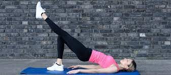 Lie on your back with your knees bent and feet flat on the floor. Lift your hips off the ground, squeezing your glutes at the top. Lower down and repeat for 12–15 reps, pausing at the top of the pose and holding your glute bridge for longer once you gain strength.