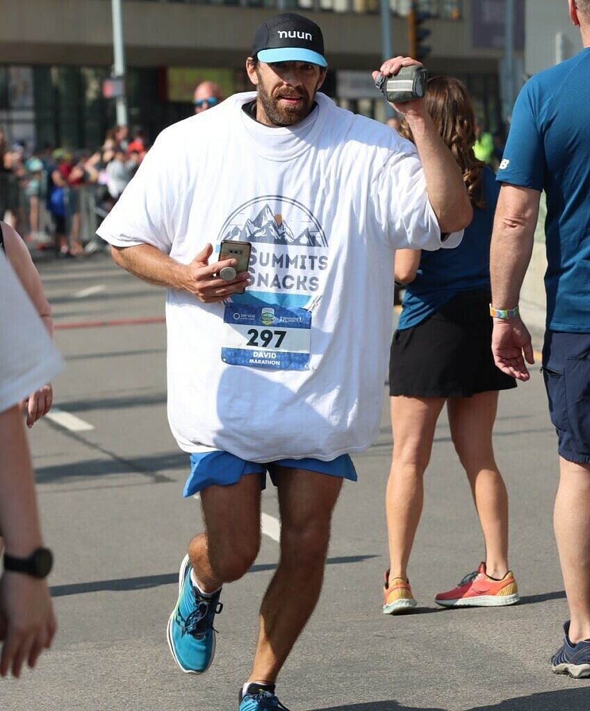 David Eliuk celebrated a top-heavy triumph at the Servus Edmonton Marathon on Sunday, setting a world record for the most shirts worn while completing a 42.2-km race.