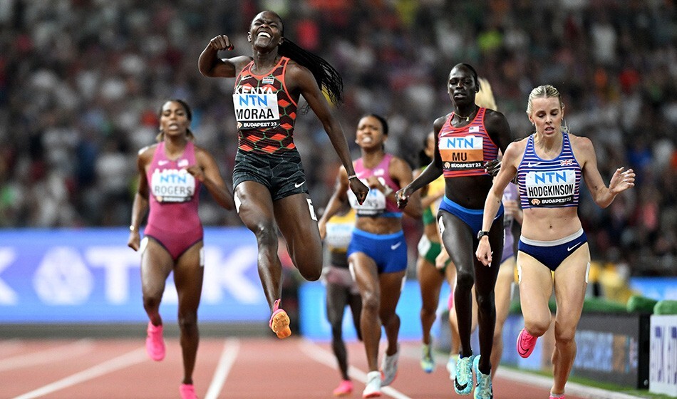 On Sunday evening at the World Athletics Championships in Budapest, Kenya’s Mary Moraa dethroned reigning world champion Athing Mu in the women’s 800m, storming past the Olympic and world champ in the final 200m to win gold in a dazzling personal best time of 1:56.03.