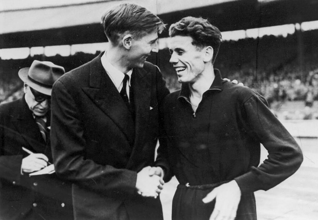 At the height of his running career, he stopped in order to concentrate on his studies in medicine. I had the great fortune to be one of the early ones who followed in his footsteps just a year later at White City Stadium, London. Here Roger is shaking my hand and offering congratulations as I had quite unexpectedly just became the 3rd person to enter this very elite sub-4 min mile club,” wrote Laszlo Tabori.