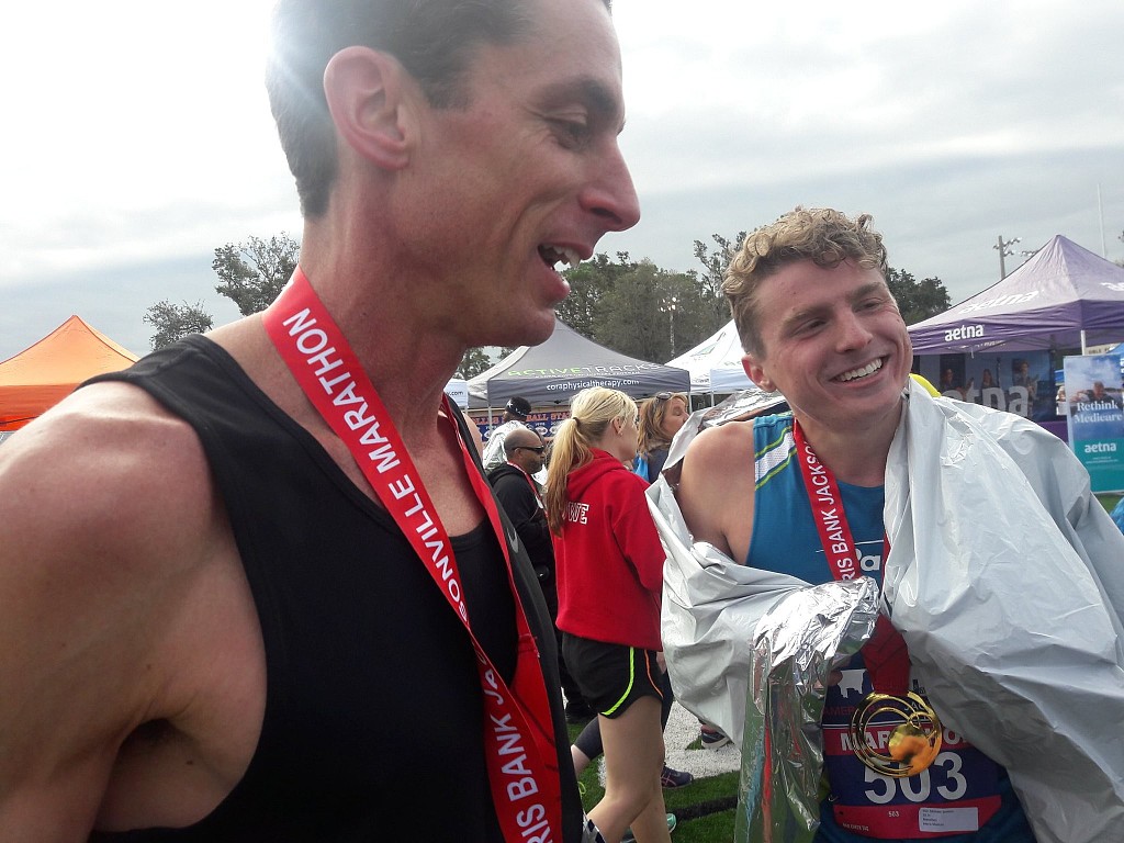 Mick Iacofano from Median, Ohio won the Jacksonville Marathon on Saturday in 2:18:39. The 23-year-old won his first attempt in near course-record time at the 35th annual Ameris Bank Marathon with his father joining him for a rare two-generation top-10 finish. “I started feeling really good and confident about my time coming into this week,†said Iacofano, whose time was just four minutes off Jerry Lawson’s course record of 2:14:33 from 1992. Michael Iacofano, Mick's father placed 7th.