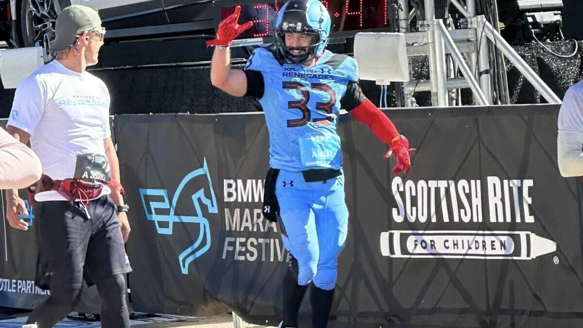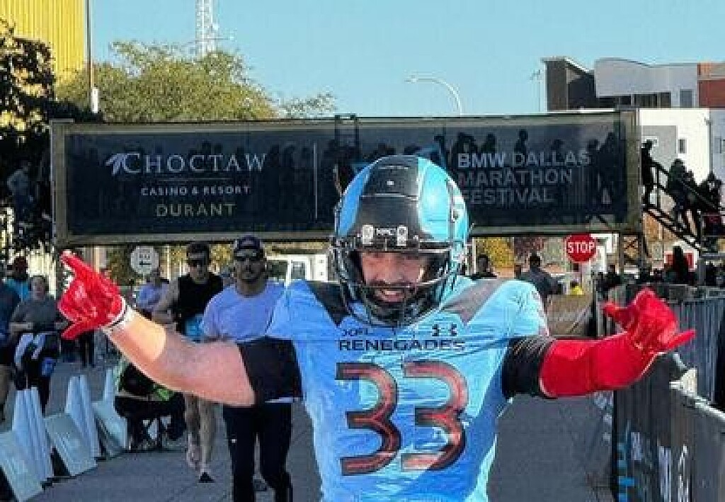 According to Dallas Morning News, Goldsmith initially aimed for a Boston Marathon qualifying time when he signed up for the BMW Dallas Marathon. However, a colleague’s suggestion to run the race in an Arlington Renegades shirt sparked an idea—why not fully suit up in gear and go for the Guinness World Record?