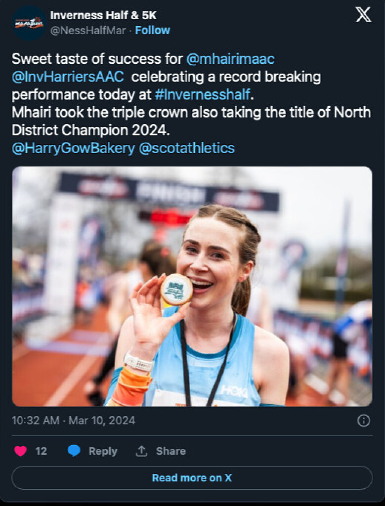 “We are thrilled to offer something unique to the Inverness Half Marathon and 5K this year with our commemorative biscuits,” said Fraser Gow, the director of Harry Gow Bakery. “The biscuits were specially crafted to reflect the medal design with the event logo.”