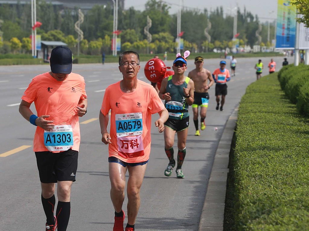 When many friends of his age are suffering from senile diseases, some of whom cannot even walk without external support, Gu Dawo, 74, is running the marathon. For the second time, Gu shows up as a pacer on Sunday's International Marathon in Yinchuan, the capital city of northwest China's Ningxia Hui Autonomous Reigon. "I'm leading the pace and I also want to lead more to participate in this activity," Gu said. He has been quite experienced in marathon running. The past 2017 was a fruitful year for the 74-year old. Gu went to the United States to run a half marathon in Georgia, and a triathlon in the Ironman 70.3, Chattanooga of Tennessee. "I was the oldest to complete the triathlon, many jumped cheering when I was introduced to be from China in the award ceremony," He said, showing a video clip recording the big moment he was breasting the tape in Chattanooga. "A Chinese grandpa of 73 was recorded to be the oldest to complete the Ironman 70.3," A local American website said while many American audience nicknamed him as Chinese Grandpa to set a record. In the same year, he also competed in marathons in Lanzhou and Xiamen, becoming a running idol for people both old and young. "Everytime I compete in a marathon, many will come to me and say 'if only I could run like you at your age'," Gu said, adding that young people wish to be as strong as him when they are aged, but always excuse themselves that they are much too busy to exercise. "One should exercise young. Some of my age envying me of my physique have lost the best time to run for exercises," Gu said. "I always ran to work when I was young," he added. Since the 1990s, Gu has kept this habit of running and the first time he competed in a race, he won 20 yuan ($3.13US) which encouraged him a lot.