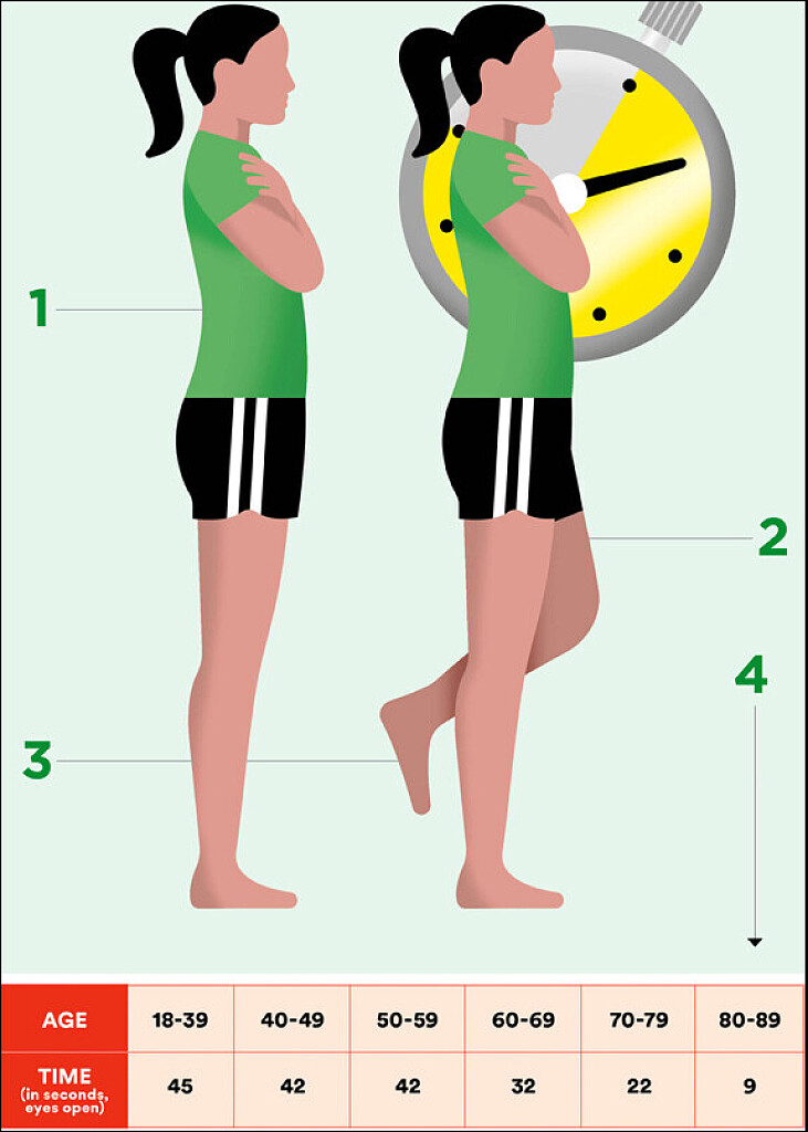 03/ Hold for up to 45 seconds, or until loss of balance and the raised foot hits the ground.