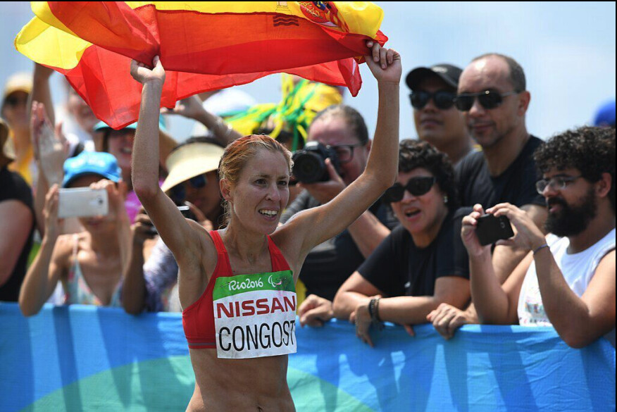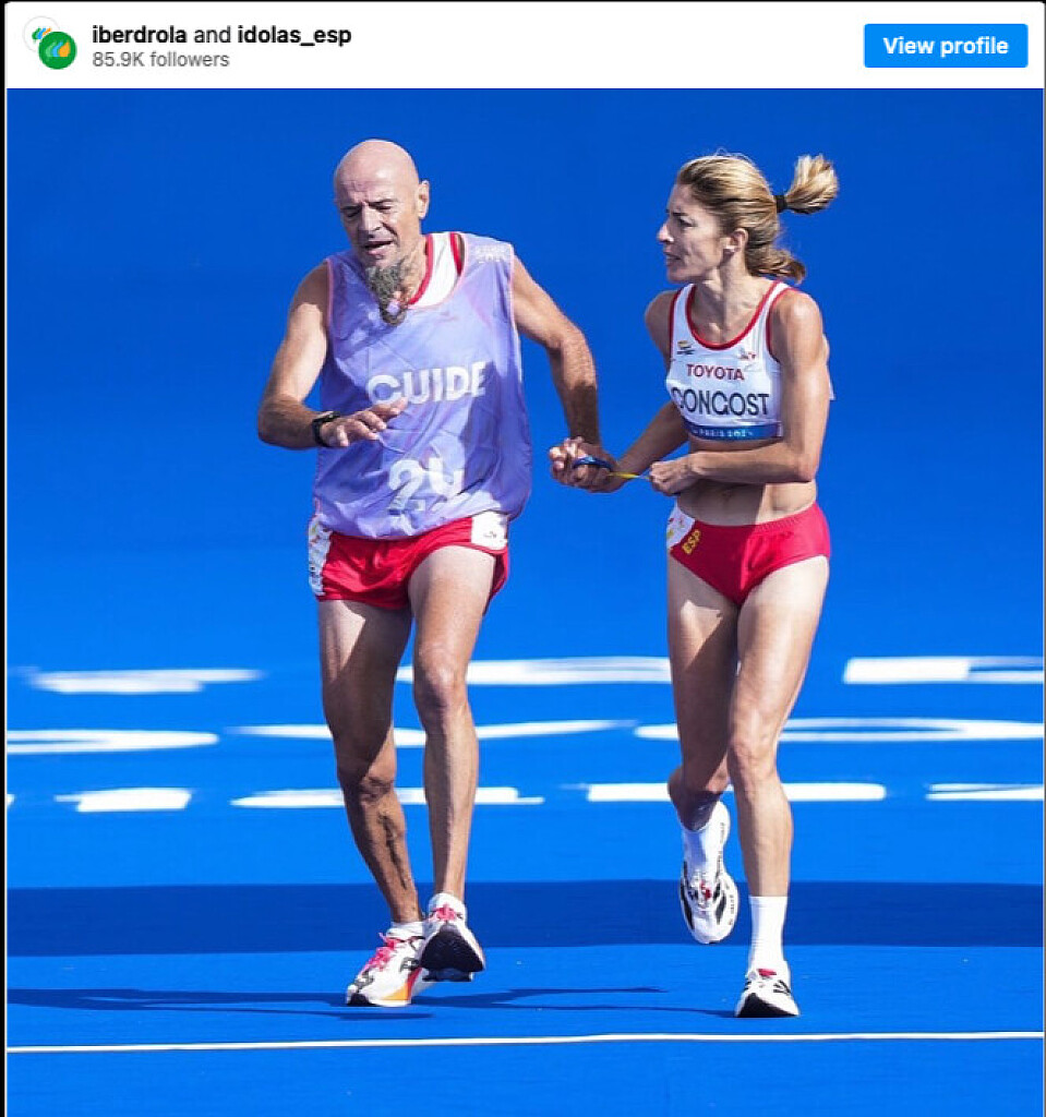 Congost was born with a degenerative vision impairment and competes in the T12 classification–runners in the T12 event must remain tethered to their guide for the duration of their race. The rules make no exceptions for these sorts of extenuating circumstances.
