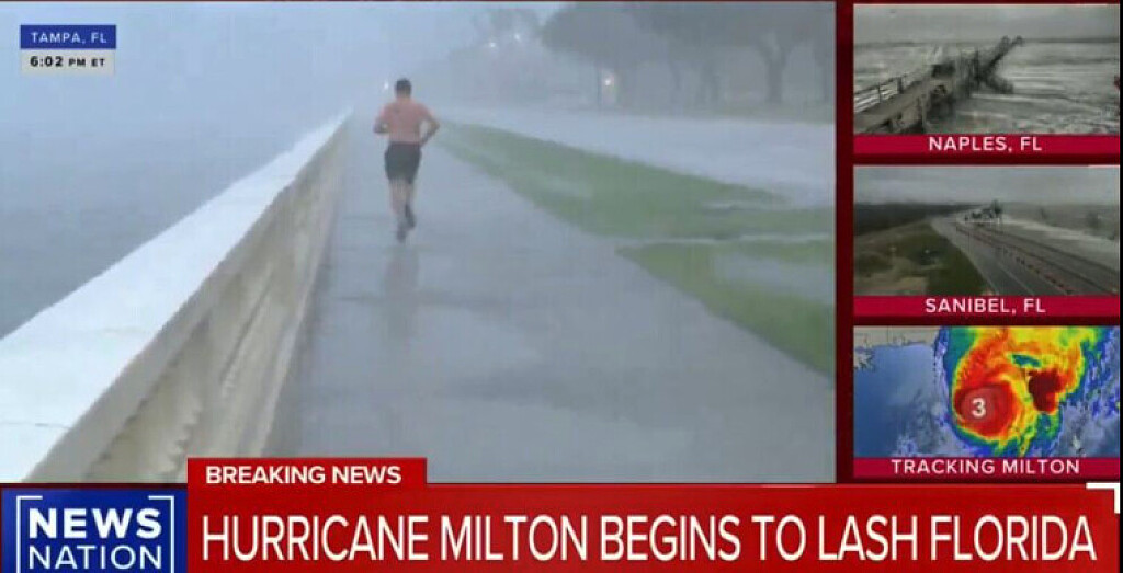 Hurricane Milton brought devastating winds and catastrophic flooding to much of Florida’s Gulf Coast, leaving 3,000,000 people without power. With warnings as dire as, “If you stay, you will die,” the runner remained undeterred—Florida’s own real-life Forrest Gump—determined to hit his mileage goals. Because, after all, when you’ve got a race coming up, even a Category 3 hurricane can’t stop you.