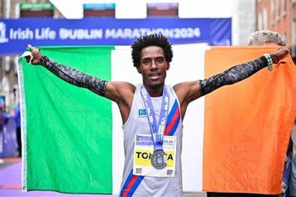 An Irish citizen since 2020, the 29-year-old Tonosa has already won a series of national titles on the track and the road, but this one felt special for many reasons, Dublin being his hometown since 2017. "I know I can hold this flag. This is the country that saved my life," an emotional Tonosa said. Kenya's Moses Kemei won the Dublin Marathon and crossed the line in a personal best time of 2:08.46 with Ethiopia's Abebaw Desalew second in 2:09.23.
