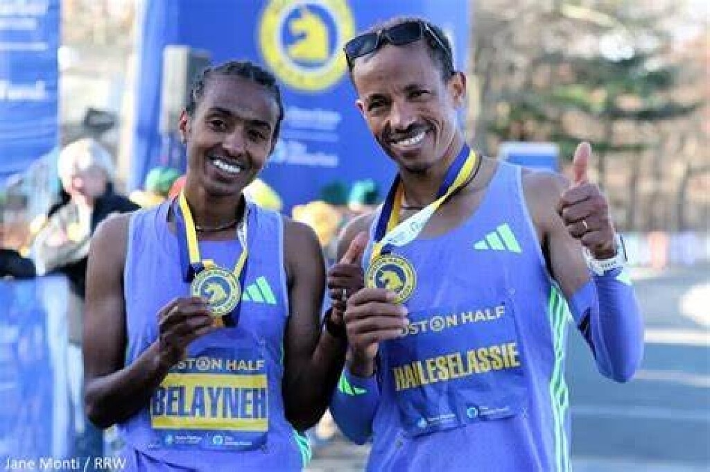 Fentaye Belayneh of Ethiopia and Yemane Haileselassie of Eritrea won this morning’s 22nd Boston Half-Marathon on a sunny and near-freezing morning here. Employing completely different tactics, Belayneh won in a pack-sprint to the finish in Franklin Park where the first three women finished in a span of just one second. Haileselassie won in a solo breakaway, dominating the final miles and winning by 15 seconds. Both athletes won $12,000 in prize money.
