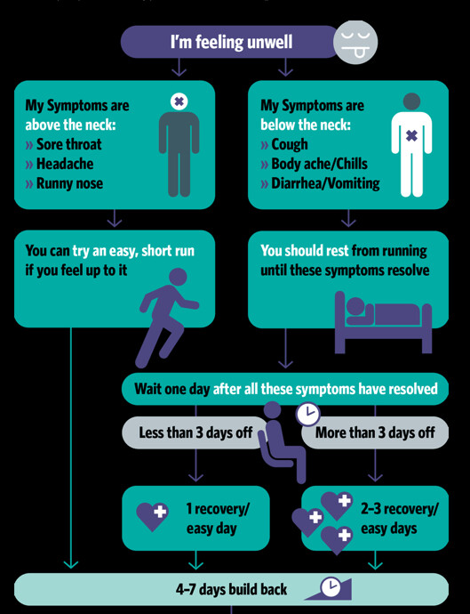 It also depends how important those runs are to your training. The first few runs in base season aren’t that critical, and skipping them while you take time to recover from illness are unlikely to affect your training once you resume running. However, being forced to miss a key workout a few weeks out from a race might be more detrimental to your performance, and could result in your having to re-evaluate your goal, possibly switching to a target race that’s later in the season.