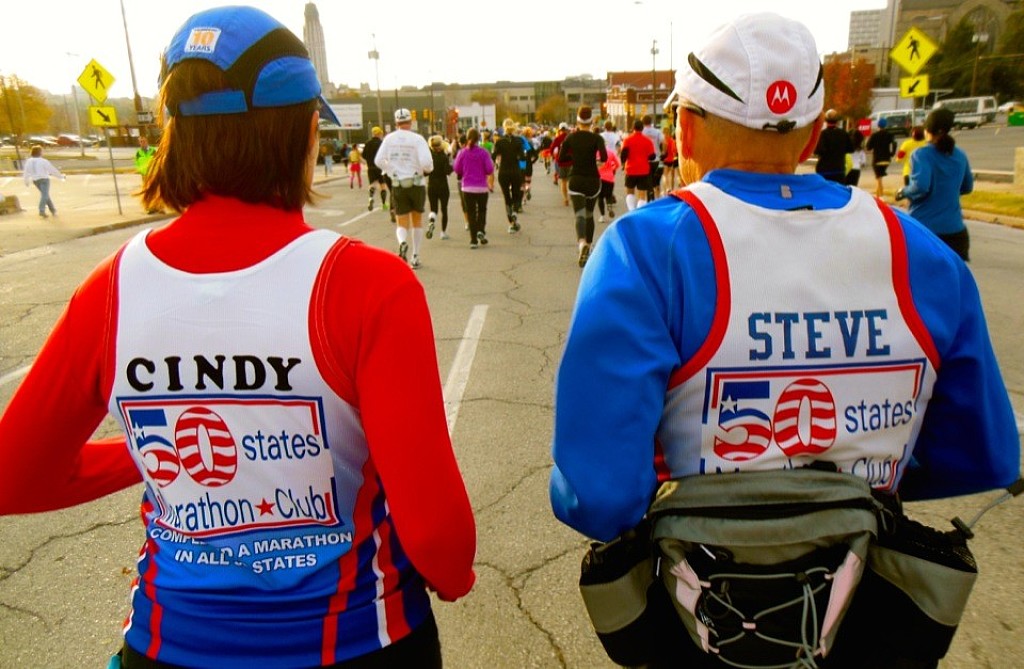The 50 states Marathon club has 4,454 members. Not all have completed the task of completing a marathon in every state in the US but they are working on it. You have to have finished a marathon in at least ten states to join. You don’t have to join their club but they offer a lot of good informaton, inspiration and advice. It is a good challenge. When Kari Hamilton crossed the finish line at last Saturday’s Nevada Marathon, the 44-year-old Bradenton, Florida social worker achieved a distinction that far surpassed finishing 28th in a starting field of 68 runners. She has now run a marathon in each of America’s 50 states. “It hasn’t hit me yet,” Kari said after returning home. “When I was finished I hugged my husband, Michael, and there were tears of joy. But it’s still so surreal.” Her first was the 2004 Chicago Marathon and, encouraged by parents Mark and Claudia Quehl, she figured she’d run one every year. “Then I joined the Bradenton Runners Club, met some folks who were running one in every state and thought, well, maybe I’ll go along for the ride,” Kari said. What a ride it’s been, too. She has run 84 marathons and ultra-marathons — 23 in Florida and as many as 15 in one year. “I’m not an athlete, but I like a challenge and each race is different,” said the Green Bay, Wisconsin, native. Her toughest race? The Leadville Trail Marathon in the Colorado Rockies. “It started at 10,000 feet elevation and went up to 13,000 feet,” Kari said. “I’m not used to those altitudes and it took me eight hours to finish.”