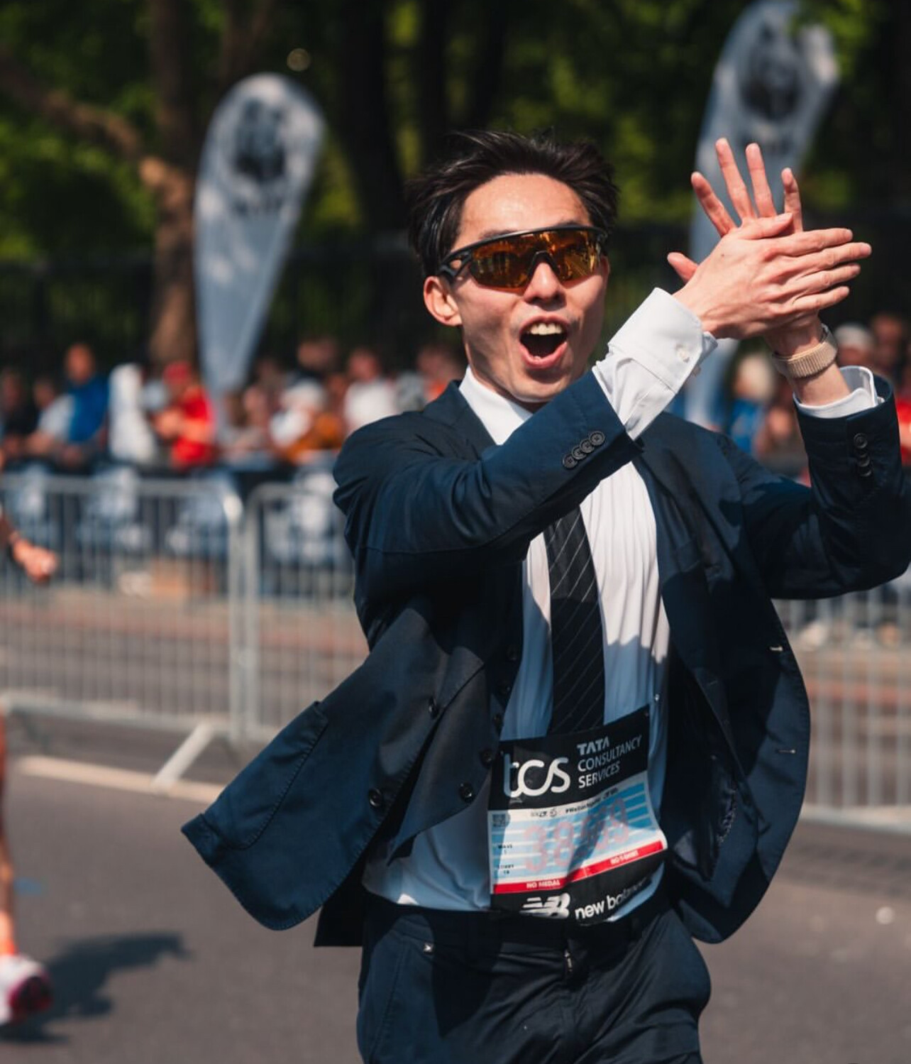 Still, the result was no joke: first person in history to go under 2:40 in a full suit, making a bold fashion statement on one of the biggest marathon stages in the world.