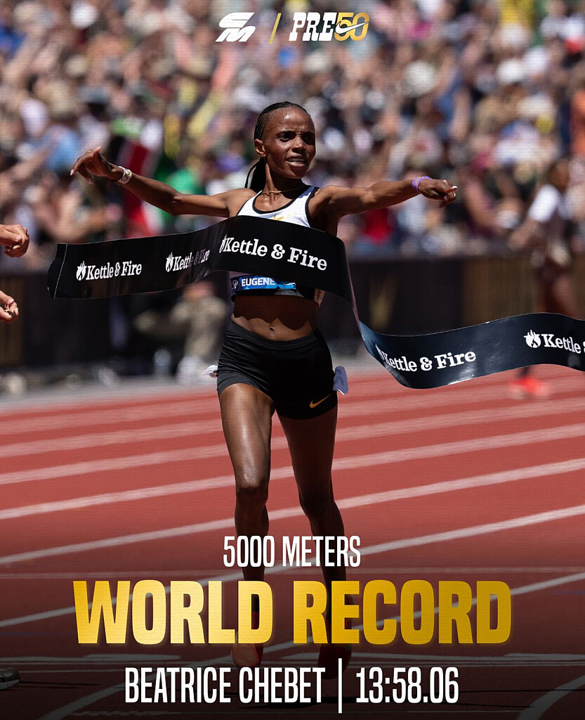 Chebet stormed to victory at the Prefontaine Classic on July 5, 2025, clocking an astonishing 13:58.06, obliterating the previous world record of 14:00.21 set by Ethiopia’s Letesenbet Gidey in 2020.