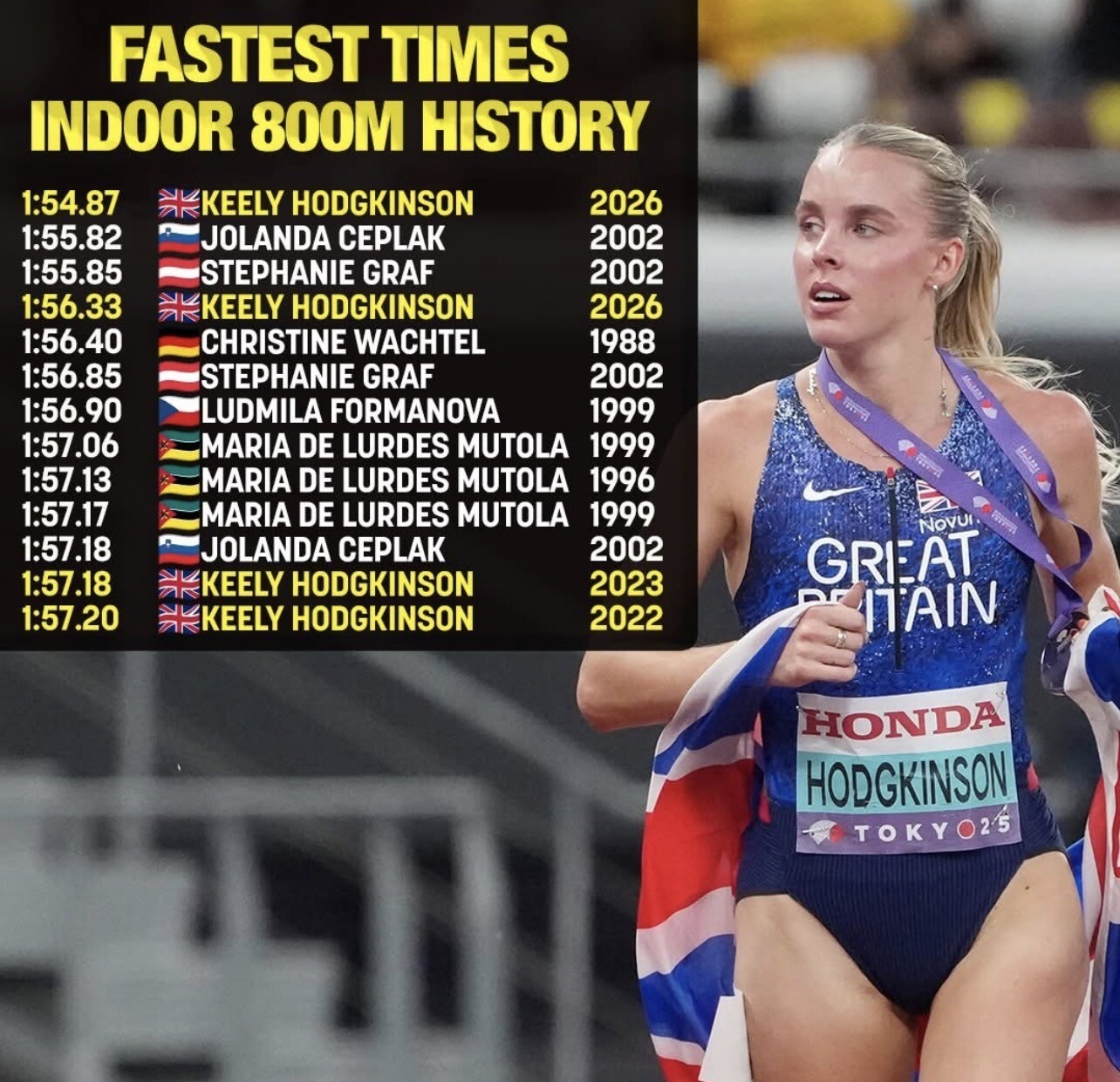 Hodgkinson stopped the clock at 1:54.87, slicing nearly a full second off the longstanding 1:55.82 mark set by Jolanda Čeplak. In doing so, she became the first woman in history to run under 1:55 indoors, a barrier many believed would stand for years.