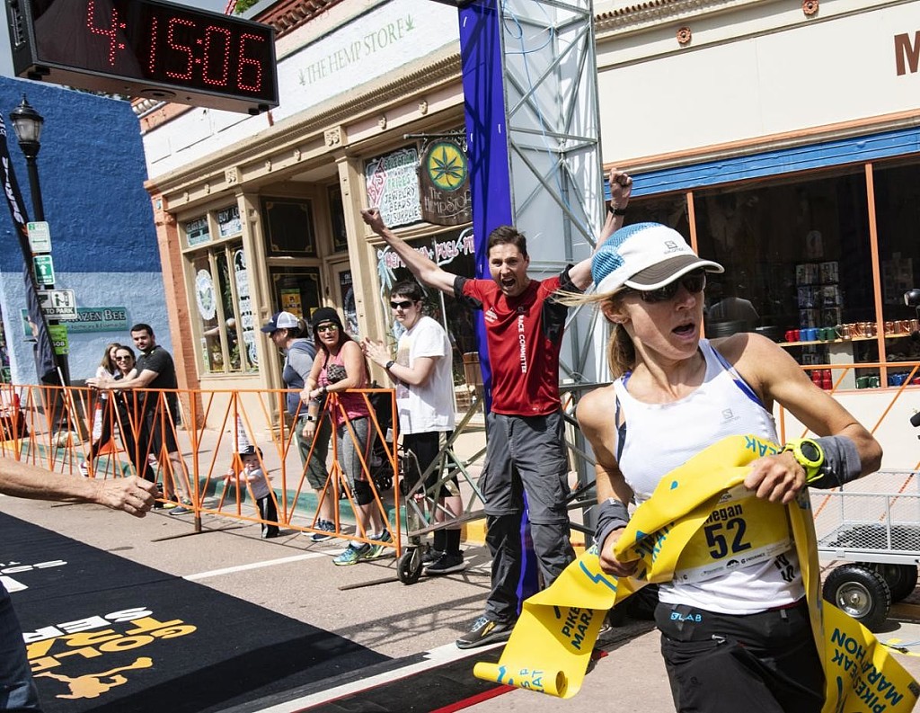 Megan Kimmel had not run the Pikes Peak Marathon in nearly 10 years, but the 38-year-old runner out of Ridgway spent much of Sunday’s descent contemplating whether or not to go for a record-breaking time. “I took note of what my time was up top, and I was like ‘I think it’s still doable,’” Kimmel recalled thinking. “At Barr Camp, I was kinda like ‘Ah, I don’t have it.’” While she didn’t think she’d be breaking Lynn Bjorklund’s record set in 1981, Kimmel kept a solid pace to keep distance between her and the competition. Her mindset changed once more, however. “It wasn’t until I hit the pavement on Ruxton (Avenue) that someone was like, ‘You can do it. There’s time,’ ” Kimmel said. “That’s when I kicked it.” Her only remaining issue was figuring out the exact time she needed. Kimmel said she knew the record was just a little over 4 hours, 15 minutes but didn’t know how many seconds she had to work with. “Once you get closer to the finish line here, people really keep you going for sure,” Kimmel said. “But I have to say, I didn’t notice it that much because I was so focused on the time and the finish that I kinda had tunnel vision going on.” The focus paid off as Kimmel stormed through the tape in 4:15:04, good for a new record and the 14th-best overall time. Kimmel chalked up her performance to living at altitude and near-ideal conditions a day after the Ascent was shortened due to expected weather. She was able to complete the marathon in a sleeveless racing top without slowing to add or remove layers.