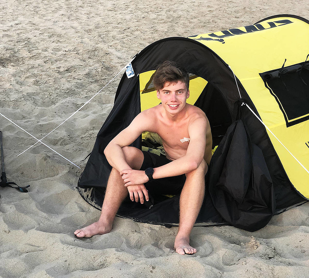 The wind blew constantly. The organizers furnished the runners with tents, pitched on a sandy beach next to the ocean. However the wind never stopped blowing, and he remembers the sounds of the tents flapping the entire night.