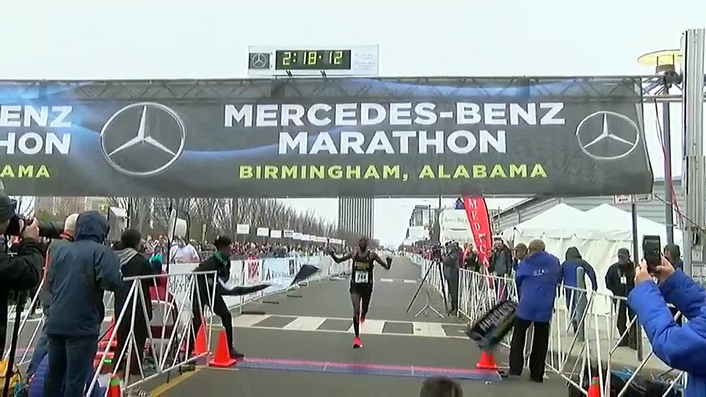He finished with a time of 2:18:12, that’s a Mercedes Marathon record. Negetich is 25. The previous course record was 2:18:48.